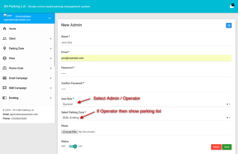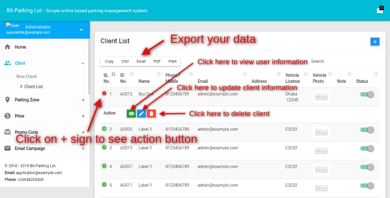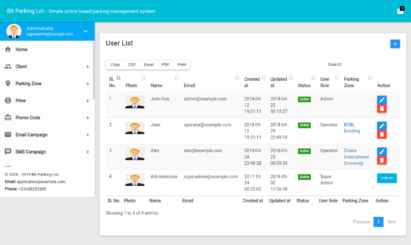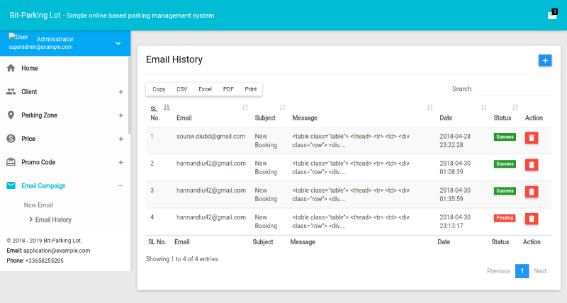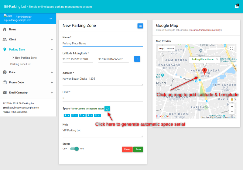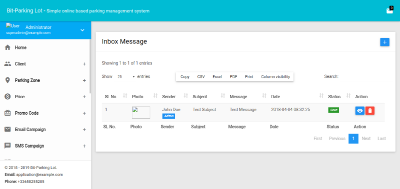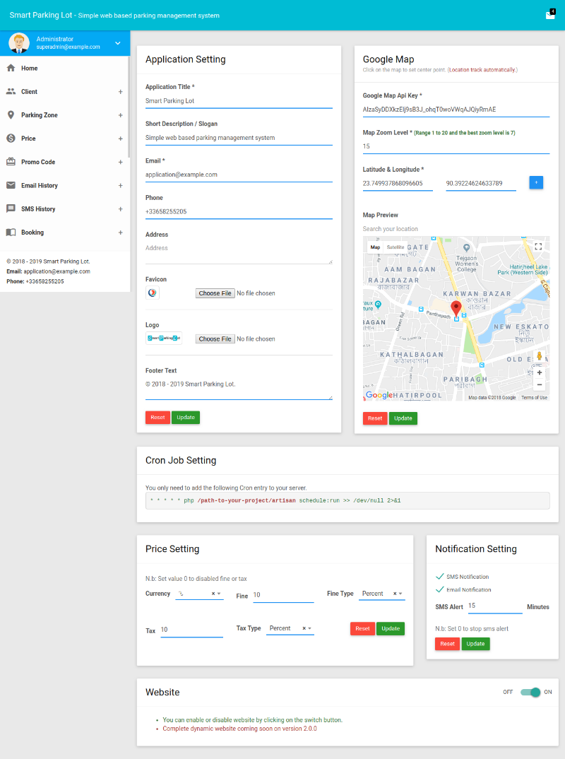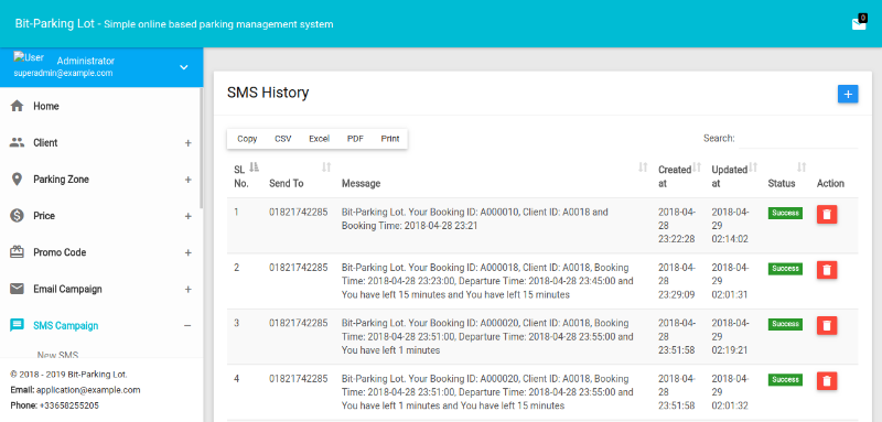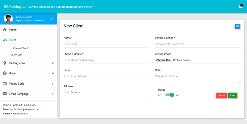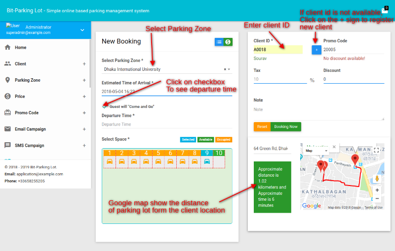 CK - Smart Parking Lot is a web-based parking reservation system which provides a best parking booking system in real time. The owner or admin can easily track the current status of parking spaces. This application provides multiple languages, sms and email notifications, two types of booking with different types pricing and internal messaging system. Client can easily find the nearest parking lot using google map. It will help to manage customer/client waiting list and allocation process in organized way. Booking serial (A000001, A000002, A000003…) respectively assigned on each booking. There is three types user account (Sueper Admin, Admin and Operator).